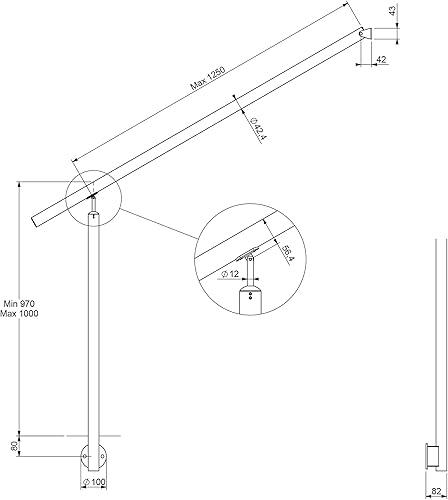 DOLLE Geländer Edelstahl Hauseingang seitliche Montage 1 Pfosten mit Wandanschluss Länge 150 cm Höhe 100 cm witterungsbeständig