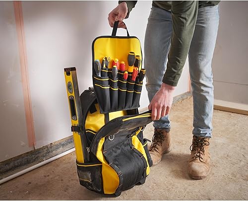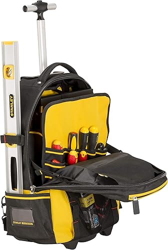 Stanley FatMax 1-79-215 Werkzeugrucksack, wasserdichter Kunststoffboden, atmungsaktive Polsterung, stabiler Teleskopgriff, robustes 600 Denier Nylon, 36 x 23 x 54 cm, Schwarz
