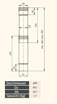 SYSTERM Abgasableitungssystem Ø 80 mm für Kaminen oder Pelletheizgeräten, alle Elemente der Schornsteinanlage an einem Ort (Pelletrohr 0,5m)