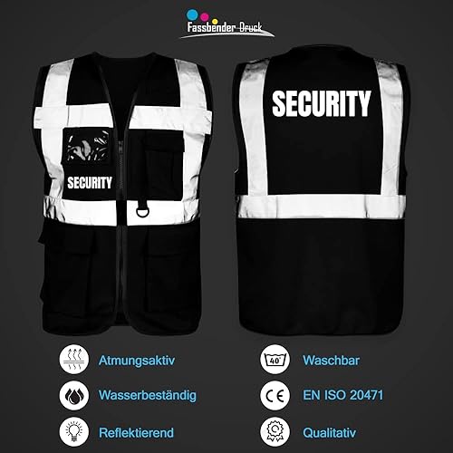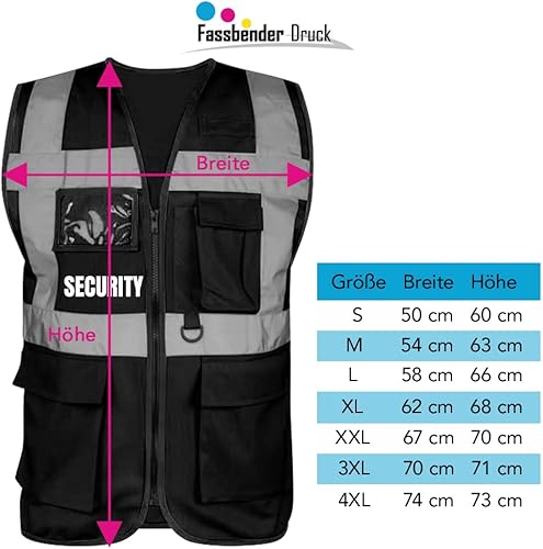 Fassbender-Druck WARNWESTEN - Sicherheitsweste GELB mit Taschen und Reißverschluss nach EN ISO 20471 zertifiziert - Warn Weste für SECURITY - Unisex mit hochwertigem Reflektorstreifen