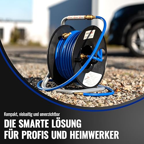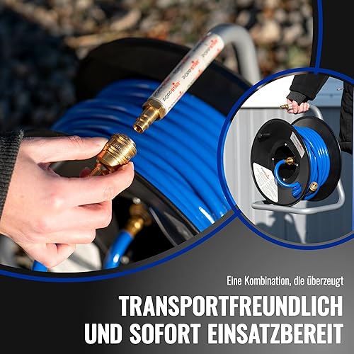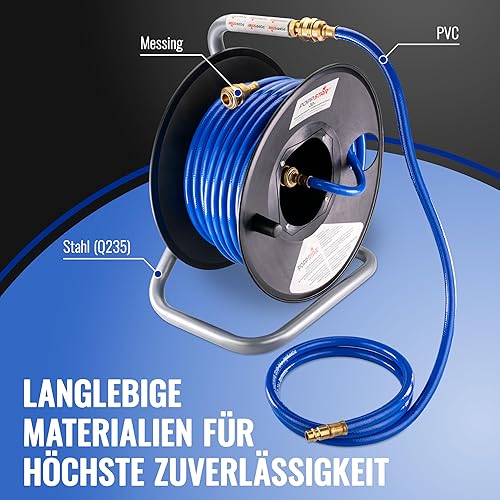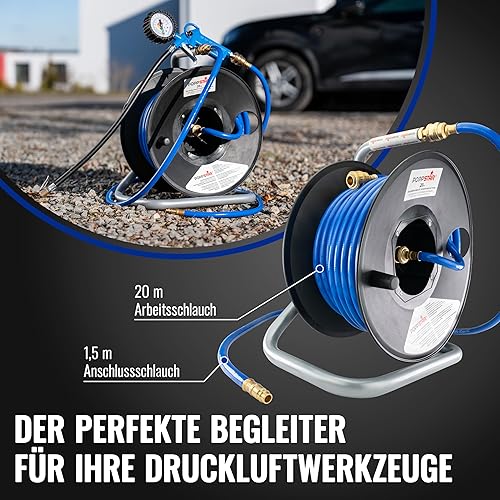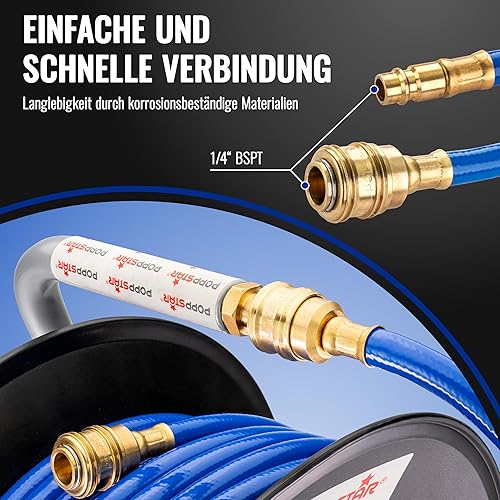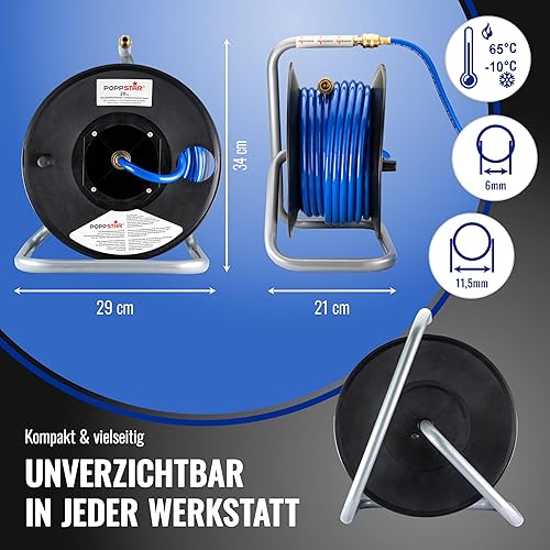 Poppstar Manuelle Druckluftschlauchtrommel aus PVC (20m+1,5m, Durchmesser (6x11,5mm)), Anschlüsse 1/4 Zoll BSPT