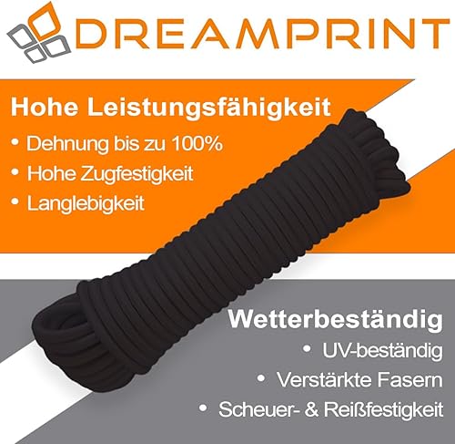 Dreamprint Expanderseil 20m Blau 6mm Ø - Gummiseil, Planenseil, elastisches Seil für Innen & Außen - Wetterfest & Reißfest - Ideal für Ladungssicherung, Planenbefestigung, Camping & Outdoor