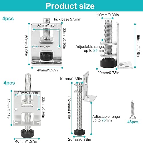 JidRMC 8 Pcs Verstellbare Möbelfüße Kit,55/102mm Schwerlast-Möbel-Nivellierfüße, mit 48 Kleine Schraube, für Möbel, Tisch, Regale, Schränke, Werkbank