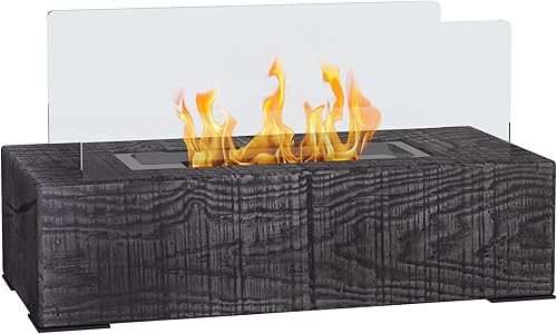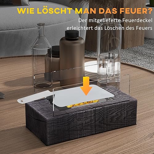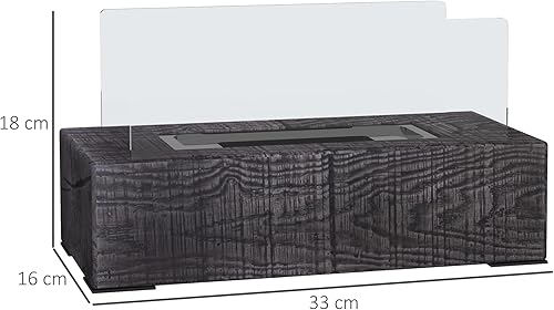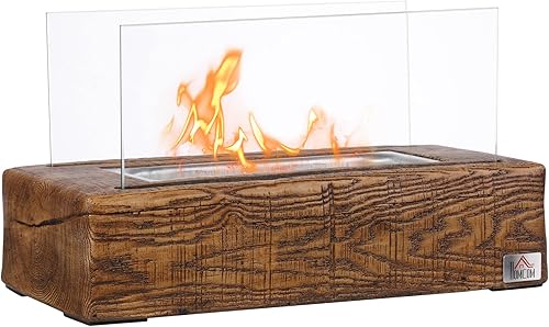 HOMCOM Tischkamin, Bio-Ethanol Kamin, 0,15 L Tischfeuer, tragbarer Indoor-Kamin mit Holzoptik, Edelstahl, 1000BTU, 33 x 16 x 18 cm
