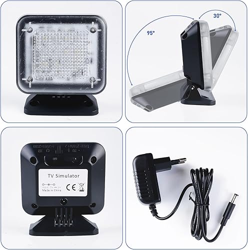 Asfrode TV Simulator, 12 LEDs Dummy TV Fernsehsimulator 3 wählbaren Programmen Energieeffizient Fernseh-Atrappe mit Zeitschaltuhr Komplett Netzadapter für Einbruchschutz