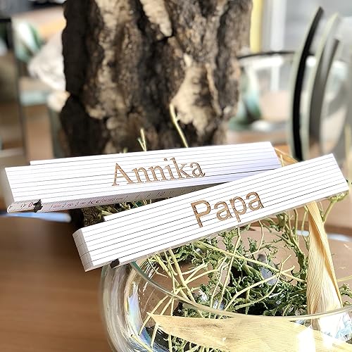 Zollstock personalisiert mit Namen | BEIDSEITIG OHNE AUFPREIS | Gliedermaßstab Geschenk für Männer Opa Papa Vatertag Muttertag Weihnachten weiß 2m