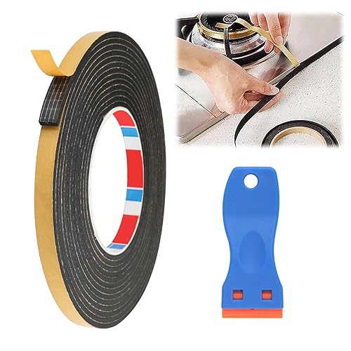 Ceranfeld Dichtungsband Selbstklebend, 5m Dichtband für Kochfeld mit kleinem Schaber, 10mm x 3mm Hitzebeständiges Montageband für Elektroherde & Kochfelder, zuverlässige Abdichtung