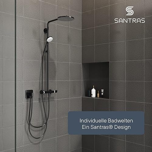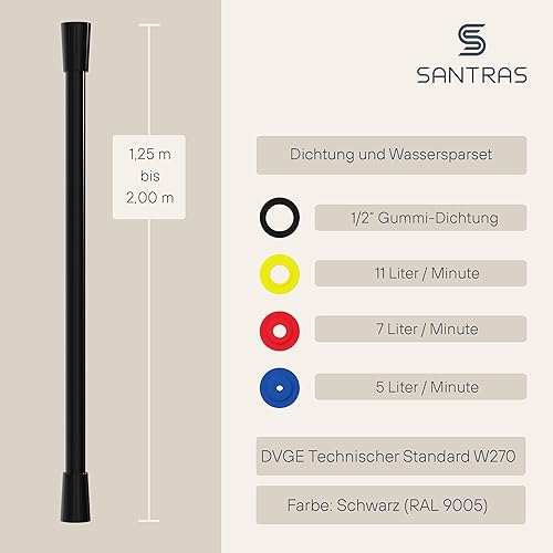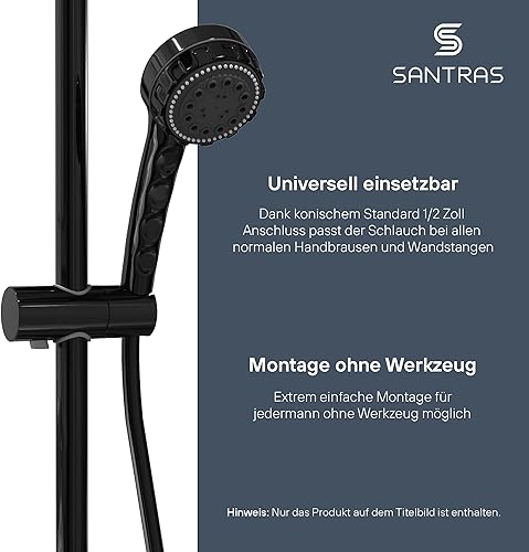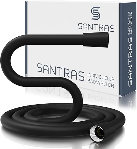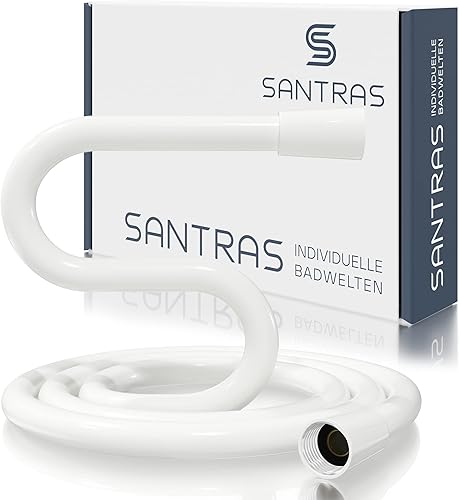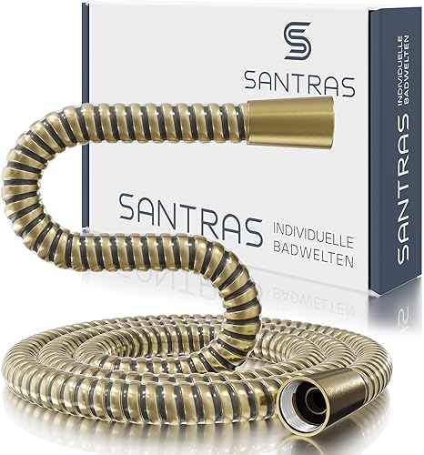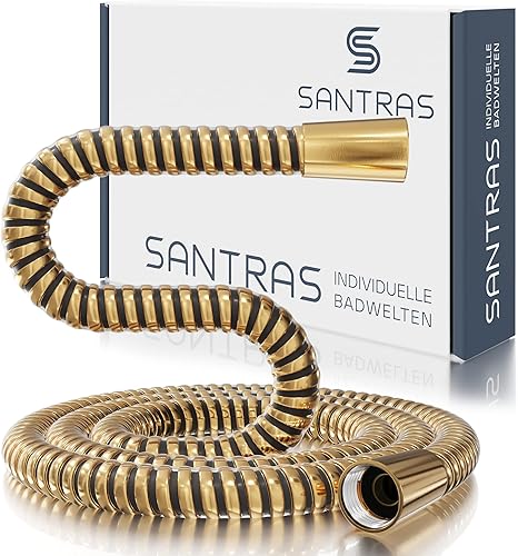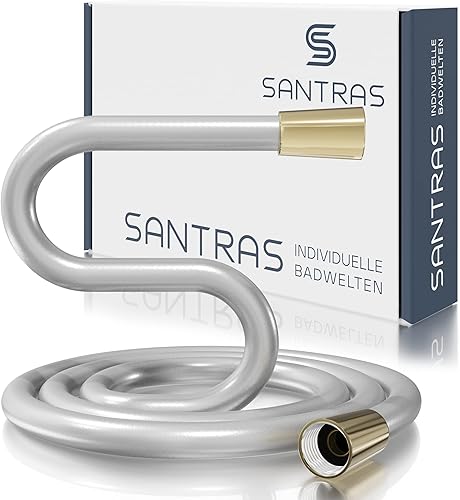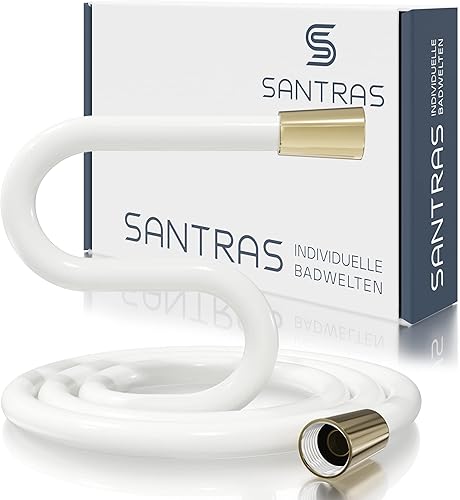 SANTRAS® Duschschlauch PREMIUM Weiß/Gold 1,50 m mit Durchflussbegrenzer – Besonders flexibler Brauseschlauch aus Easy Clean Material MADE IN GERMANY