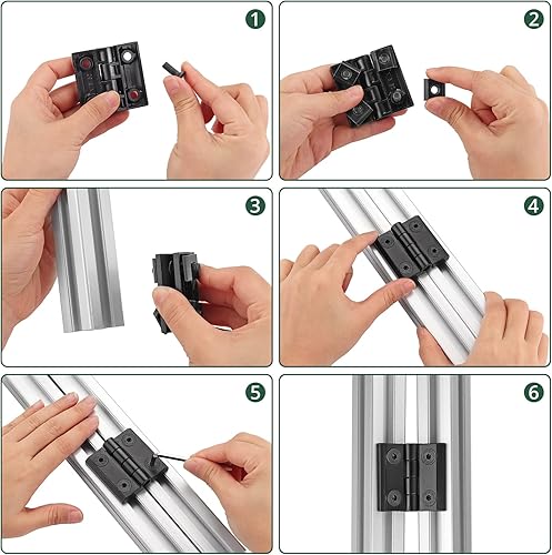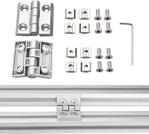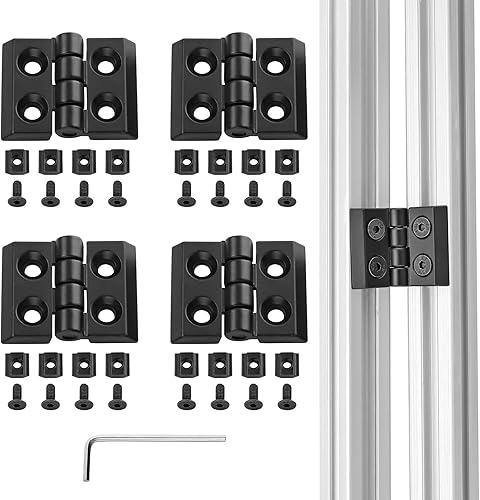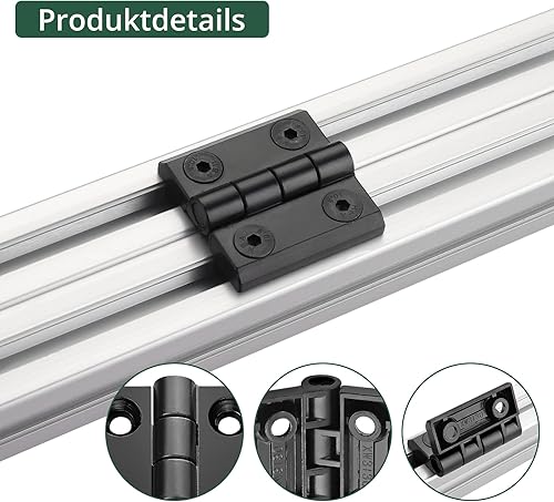 JiGiU 4 Stück Scharnier M4 Klappscharnier für 2020 Aluprofil Nut 6 Türscharnier aus Zinklegierung, inkl. Nutenstein und Schrauben, Aluprofil-Zubehör Drehband für Leichte DIY Schranktüren (Silber)
