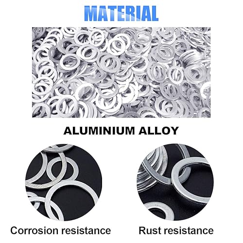 Glarks 470 Stück Aluminium Dichtungsring-Sortiment metrische Dichtungsringe O-Ringe Set 18 Größe M6-M24 Hydraulic Plumbing Dichtungen Dichtungssatz für Reparatur Autos Sanitär Werkstatt Hydraulik