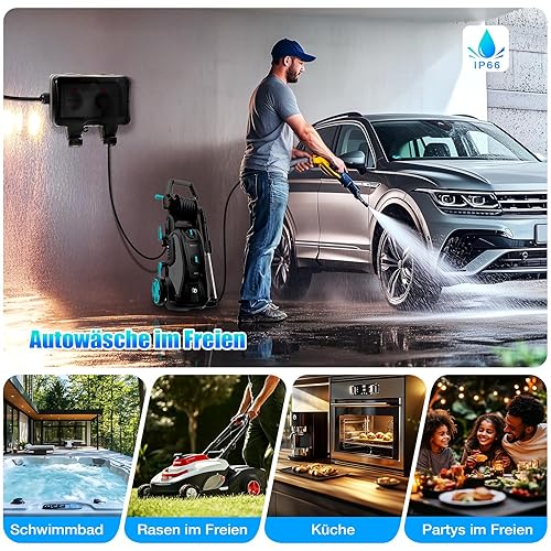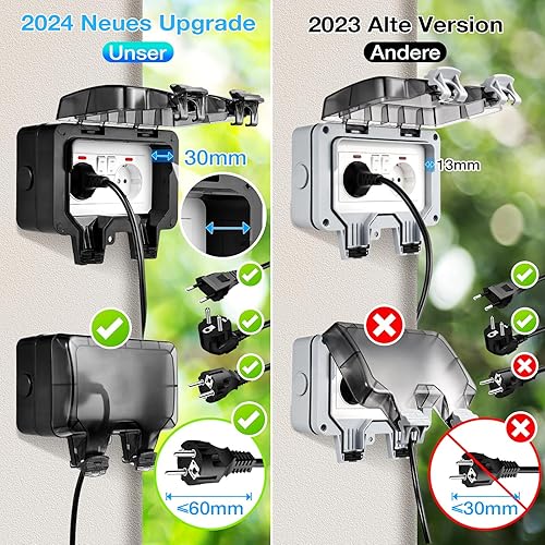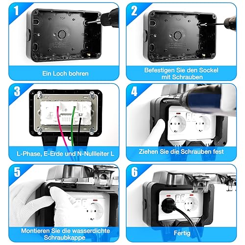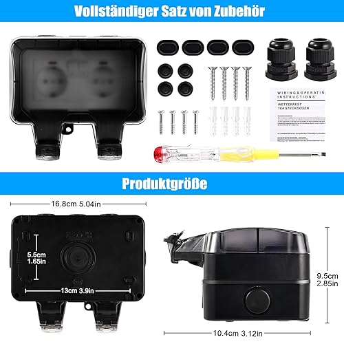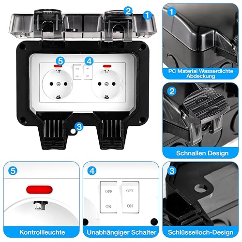 Aussensteckdose Wasserdicht IP66 Outdoor Steckdose mit Schalter Kontrollleuchte, 3680W Wetterfest Außensteckdose Aufputz Wand Garten Steckdose mit Klappdeckel inklusive Gärten Schwimmbad Aussenbereich