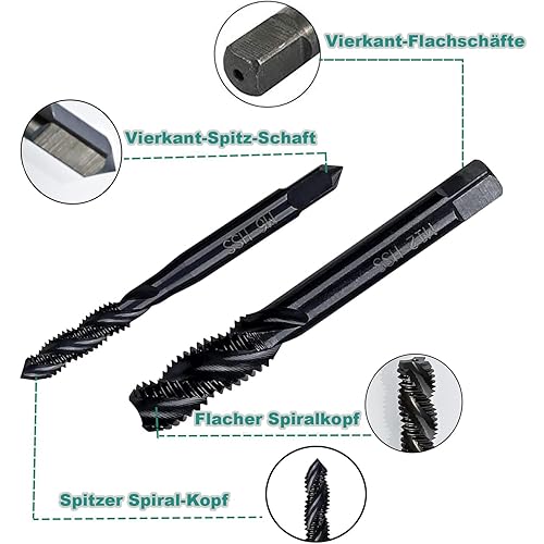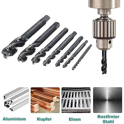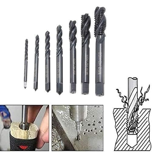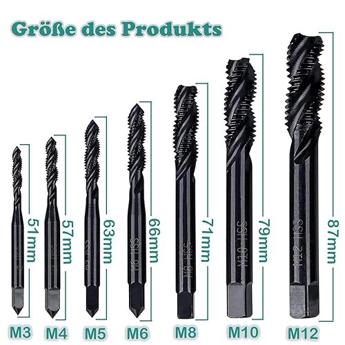 KEWAYO 7 Stück Gewindebohrer Set, HSS 6542 Nitrieren Metrisch Spiralnutbohrer, Maschinengewindebohrer Gewindebohrer Satz M3 M4 M5 M6 M8 M10 M12 für Metall Holz Bohrer