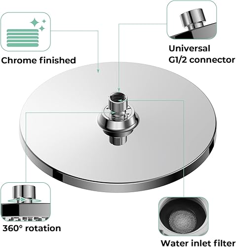 Regenduschkopf Duschkopf Regendusche Watersaving YUANNY 10 Zoll Wasserspar Universal-Kopfbrause mit Anti-Kalk-Düsen Brausekopf, Runder Duschkopf Ø 26 cm,Stable ABS Chrom