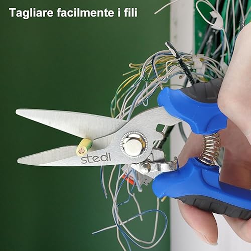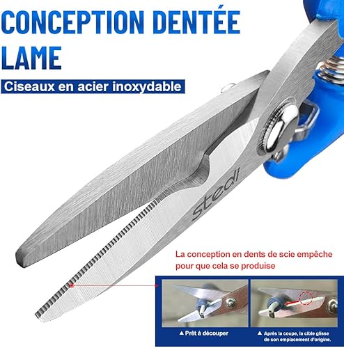 stedi 180mm Schere Hochleistungs-Mehrzweckschere Mit Fein Gezackten Klingen Aus Kohlenstoffhaltigem Edelstahl – Einfaches Schneiden Von Elektrischen Kabeln, Kerbe, Lsolierung, Rutschfester