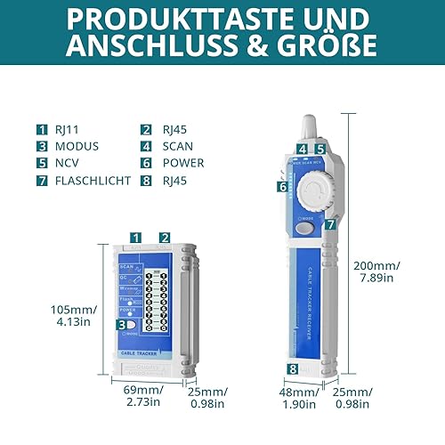 YGiTK Netzwerk Kabel Tester NCV Tester mit LCD, Multifunktions Kabel Tester, Kabel CAT5 CAT6 CAT7 CAT8 Draht Netzwerktester, Wire Tracker Line Finder für Telefonleitungstest, Kontinuitätsprüfun