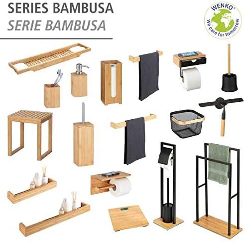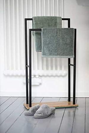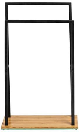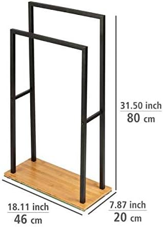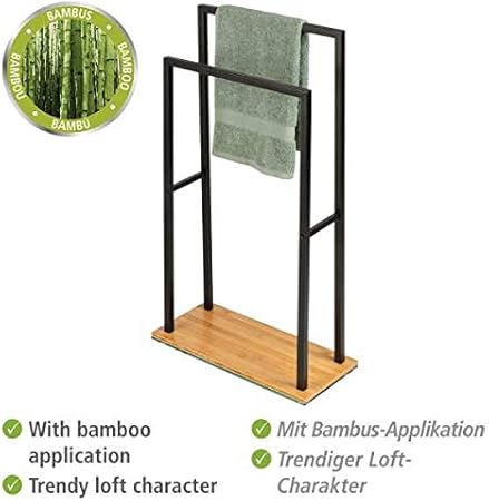WENKO Handtuchständer Mod. Bambusa, Handtuchhalterung mit 2 Handtuchstangen, Fuß aus Bambus, Gestell aus schwarzem Stahl, 46 x 20 x 80 cm, Natur/Schwarz