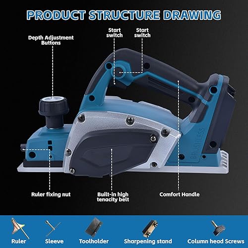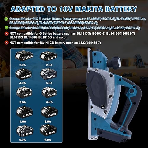 Akku-Hobel kompatibel mit Makita 18V-Akku (82mm, ohne Akku/ohne Ladegerät), 20.000 U/min, Bürstenloser Moto, Elektrischer Hobel für Die Holzbearbeitung, Blau