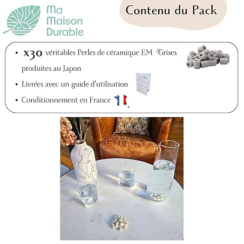 Ma Maison Durable EM® Keramikperlen, grau, 30 Stück, 100 % natürlich, Wasserfilter für Wasserhahn, natürliche Filterkugeln, Chlor, Kalk, für Krug, Karaffe, Trinkflasche, Brunnen, Wasserkocher