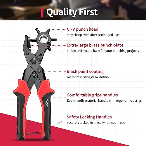 XOOL Lochzange für Leder, Gürtel Lochzange mit Hebelübersetzung, Ermüdungsfreies Arbeiten, Locher, Gürtellochzange für Uhrengürtel, Stoff, Karton, Schuhe, Geldbörsen, Kleidung, uvm…