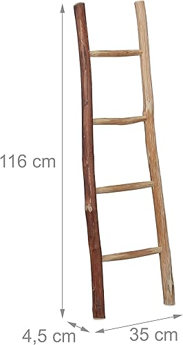 Relaxdays Dekoleiter, 116 cm hoch, Holzleiter Garten, 4 Sprossen, Kastanie, Handarbeit, Handtuch- & Kleiderleiter, Natur