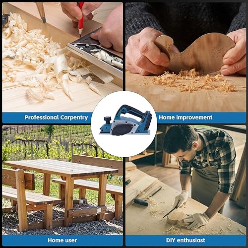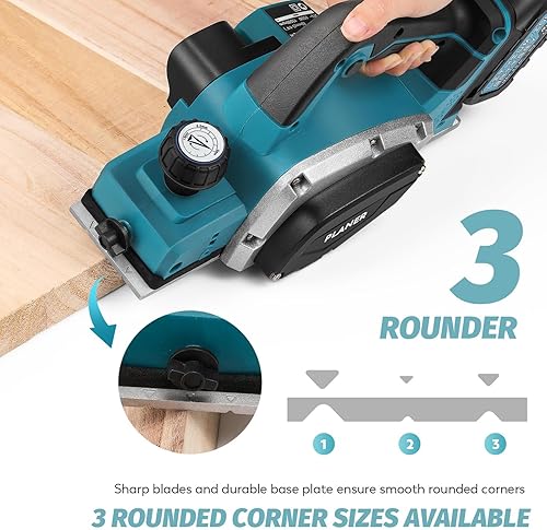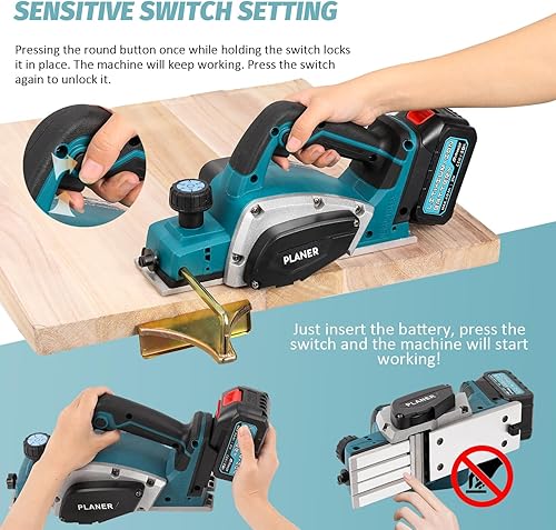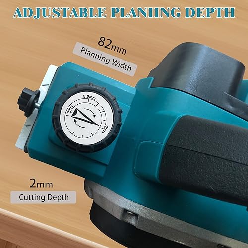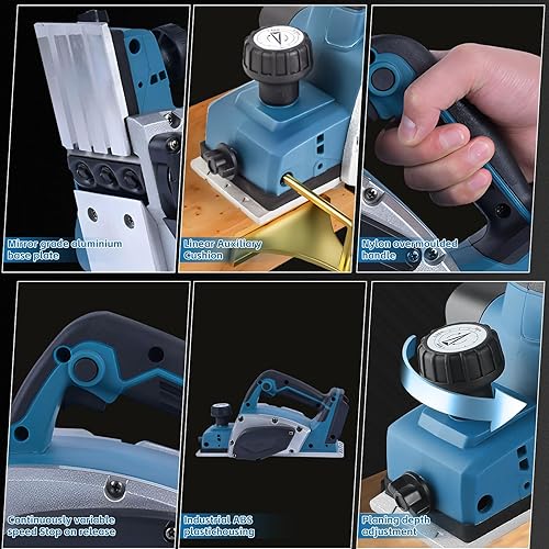 Akku-Hobel Kompatibel mit Makita 18V Batterie, 3200r/min Handgeführte Elektrische Holzhobelmaschine Elektrohobelmaschine, 0-2MM Einstellbares Tiefe für Holzbearbeitung Elektrowerkzeug