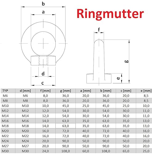 OuM 10 Stück Ringmutter M16 verzinkt, Stahl, Ringmutter