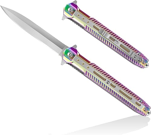 HONZIN 2 in 1 Multitool Klappmesser 3Cr13 Edelstahl Taschenmesser Tragbares Messer Rettungsmesser mit Glasbrecher Stahlgriff Camping Taschenklappmess (Regenbogen)