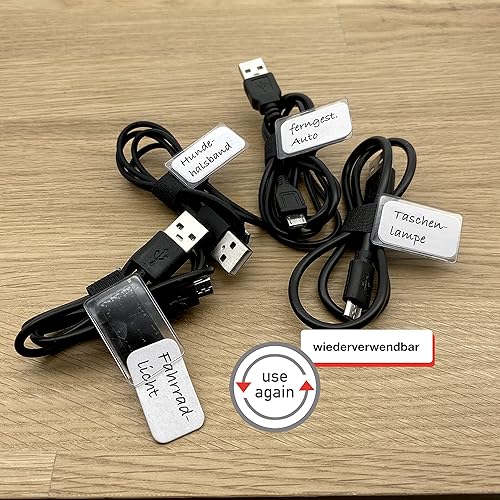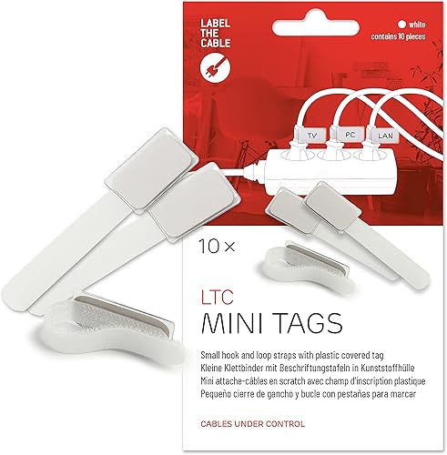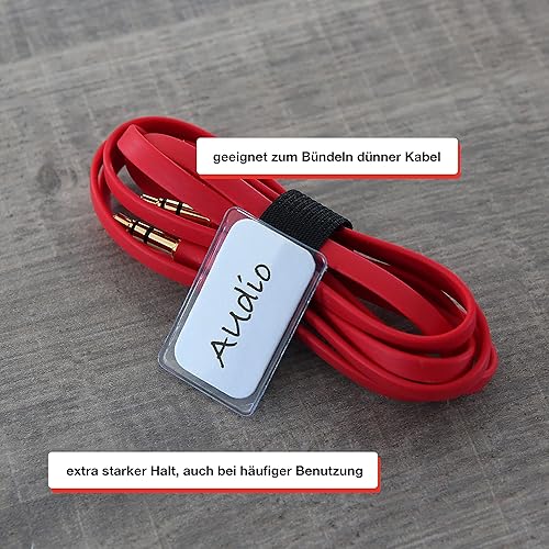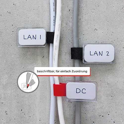 LABEL THE CABLE® 10 STK Klett Kabelbeschriftung schwarz Kabelbinder wiederverschließbar, Kabeletikett, Klettband, Kabelmarkierung, perfektes Kabelmanagement, PC Zubehör, Markierung Mehrfachsteckdose