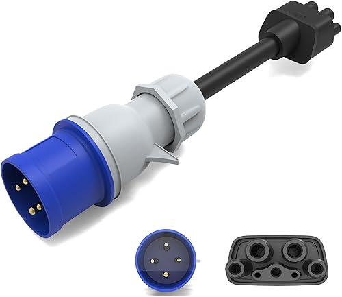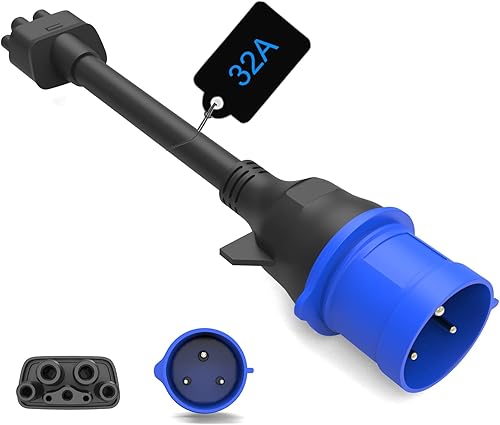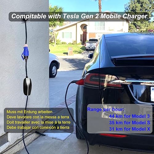 HASA zone 3Pin Blauer CEE Adapter für Tesla Gen 2 Mobile Charger, Tragbares EV Ladegerät Verlängerungskabel zu 240V Steckdose bei 32A, Kompatibel mit Tesla Model 3/S/X/Y