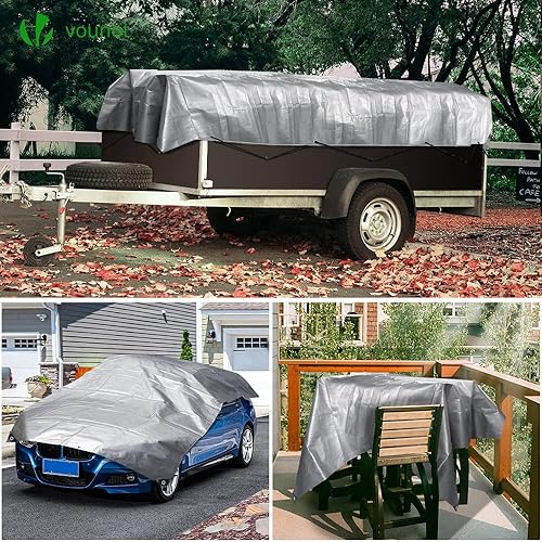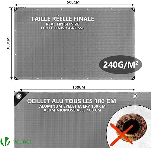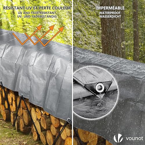 VOUNOT 3x4m Abdeckplane 240 g/m² Wasserdicht LKW Plane mit Ösen, Schutzplane Gewebeplane für Gartenmöbel Holz Trampolin Poll Auto, Reißfest Beidseitig Beschichtet, Grau