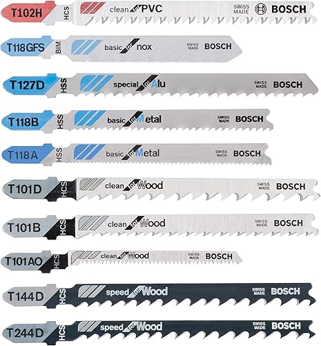 Bosch Accessories Professional 10tlg. Stichsägenblätter Set (für Holz und Metall, Zubehör für Stichsägen mit T-Schaft Aufnahme)