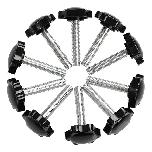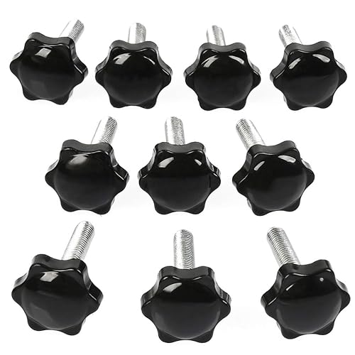 TIMESETL 10Stück M8x40mm Rändelschraube Sternschraube und Sternmutter, Sternkopfschraube M8x40 Gewinde Klemmknopf Schwarz Kunststoff Handknob Sternform Schraube auf Knopf für Werkzeugmaschine