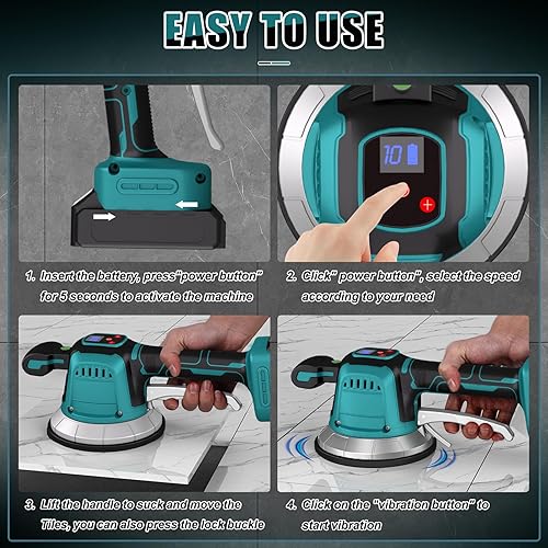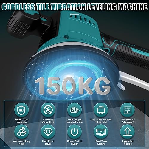 Fliesenrüttler für Makita 18V Batterie, Fliesen Vibrationsgerät, Elektrische Fliesenvibrator 14.8 mm Saugnapf 10 Gänge Einstellbar 160kg Aufnahmekapazität von Fliesen & Wandfliesen