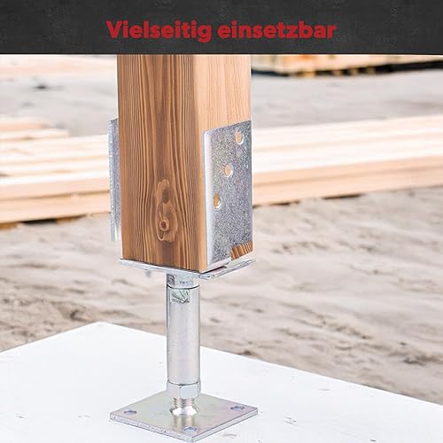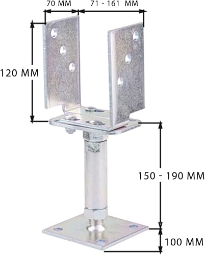 siwitec U - Pfostenträger höhenverstellbar, Höhe: 150-190 mm, Pfostenstärke 71-161 mm, U Profil Stahl galvanisch verzinkt zum Aufschrauben, dickschichtpassiviert, Bodenanker, Balkenschuh, Schraubanker