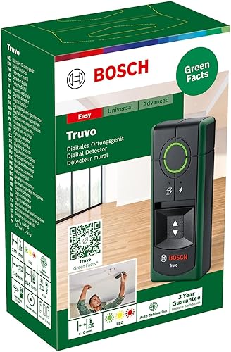 Bosch Ortungsgerät Truvo der 2. Generation (einfache Ein-Knopf-Bedienung, einfaches Orten von stromführenden Kabeln und Metallobjekten, Wandscanner bis 70mm, im Karton)