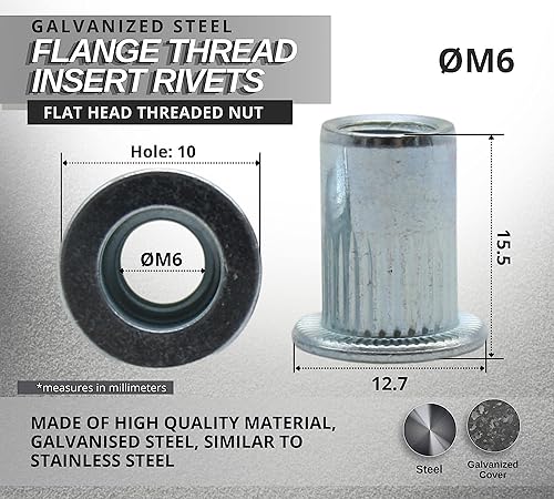 DOJA Industrial | M6 Gewindenieten Blindnietmutter | PACK 50 | Metrische Nietmuttern Stahl Galvanisch Verzinkt | Nietmutter Gewinde | Blindnietmuttern Sortiment | Einziehmuttern Nieten Rivet Set