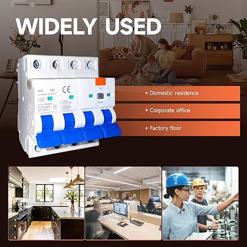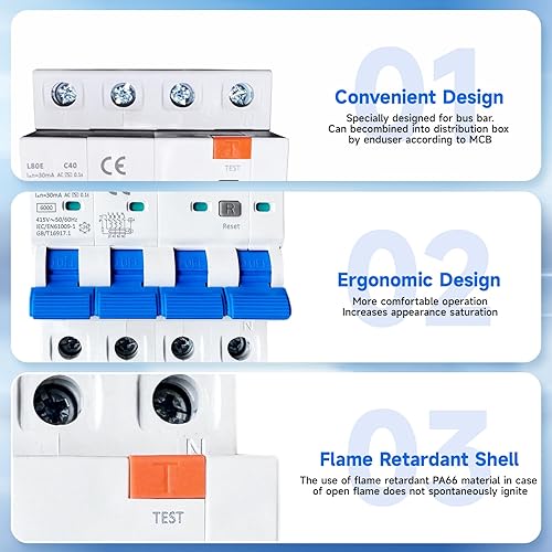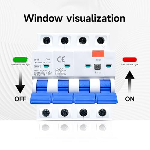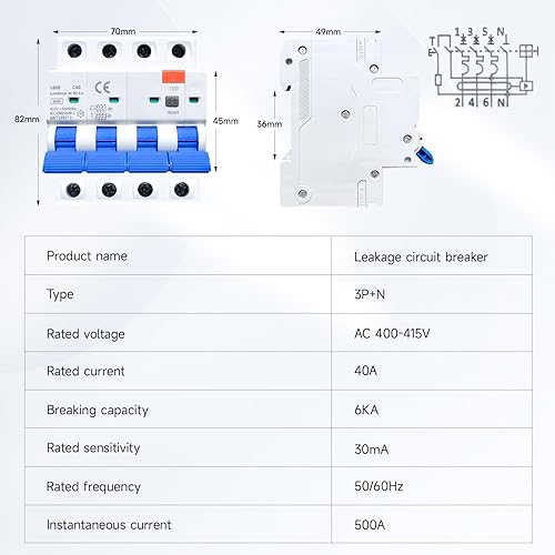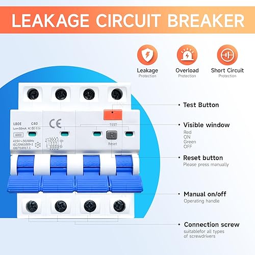 Fi Schutzschalter Typ AC 30mA 4 Polig, Fehlerstromschutzschalter Fi Schutzschalter 3P+N RCBO 6KA MCB AC mit Ableitstromschutz, Kurzschlussschutz, Überstromschutz (40A 3P+N)