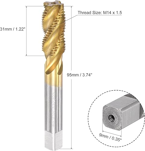 sourcing map Gewindebohrer mit Spiralnut M14 x 1.5 Schnellarbeitsstahl Titanbeschichteter Maschinengewindebohrer 4 Schneidiges Gewindeschneidwerkzeug H2 Toleranz