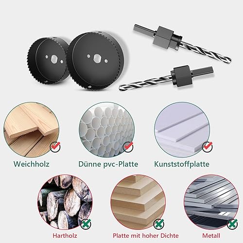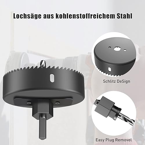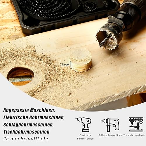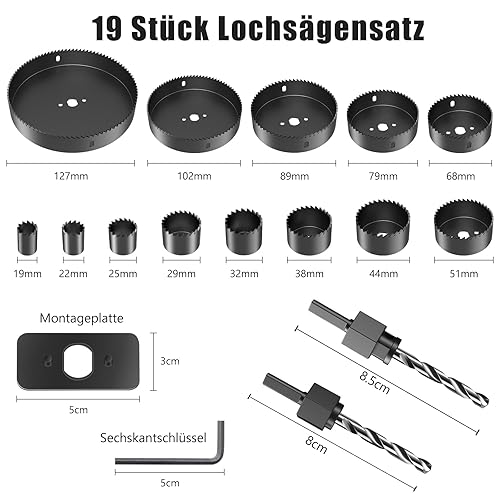 HYCHIKA Lochsäge Set, 19tlg Lochsägen Set, 13 Ø19mm-127mm Lochsäge, 2 Schraubenschlüssel, 2 Bohreinsätze, 1 Schraubendreher, ideal lochbohrer zum dünnes Holzbrett, PVC, Kunststoffplatte