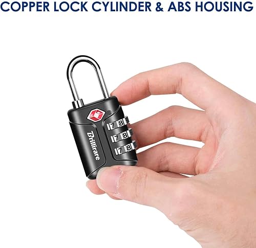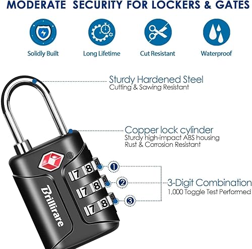 Brillirare 4 Stück TSA Genehmigte Vorhängeschloss, Reise Kombinations Kabelschlösser, 3 Stellig Gepäckschlösser Sicherheitsschloss Metall für Koffer, Rucksäcke, Turnschrank, Zaun, Tor, Koffer-Schwarz