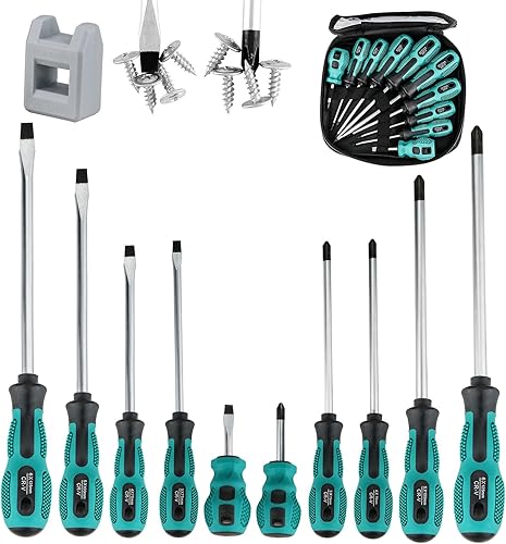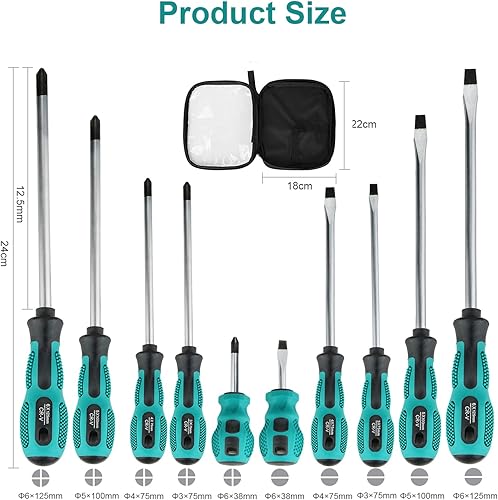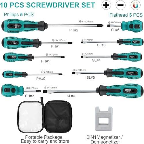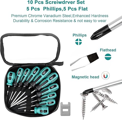 Schraubendreher Set Magnetisch, 10tlg Profi Schraubenzieher Set aus Chrom-Vanadium-Stahl, 5 Schlitz und 5 Kreuzschlitz Schraubendreher Satz, zum Befestigen und Lösen