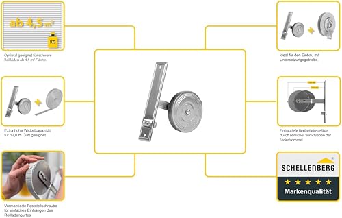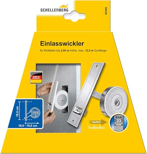 Schellenberg 50300 Rolladen Gurtwickler Unterputz, 18,5 cm Lochabstand, Einlasswickler System Maxi, verzinkt