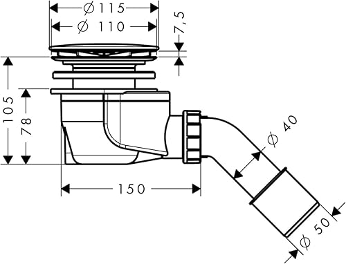 hansgrohe Komplettset Ablaufgarnitur Staro 90, Ablauf für Duschwannen mit Ablaufloch 90mm, Chrom