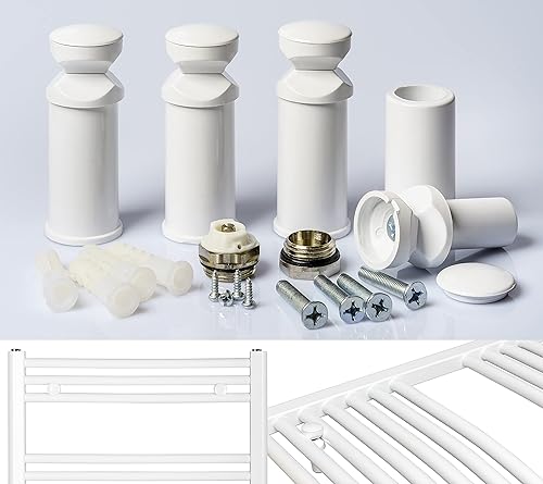 anapont Halterung für Badheizkörper in weiss chrom und schwarz geeignet für gerade und gebogene Heizkörper Befestigung (weiß)