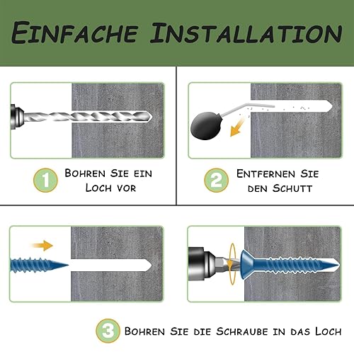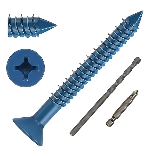 DAYALO Betonschrauben Senkkopf mit Kreuzschlitz M6,5 x 83, 30 Stück Betonschraube verzinkt mit Bohrer und Schrauberbit für Mauerwerk, Beton, Architektur, Industrie (Blau)