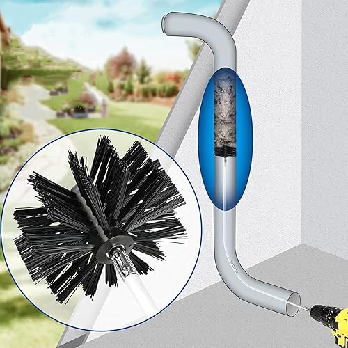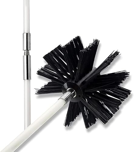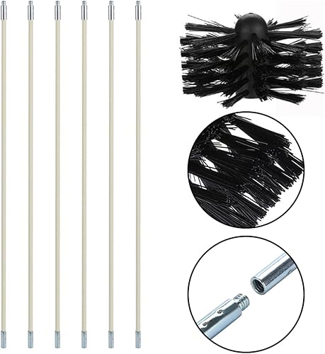 Schornsteinreinigungsbürste, Rohrreinigungswerkzeug-Set mit 6 flexiblen Nylonstangen, 1 Rauchreinigungsbürste für Schornsteinkanalentlüftung Reinigung Kaminabzug (schwarz)