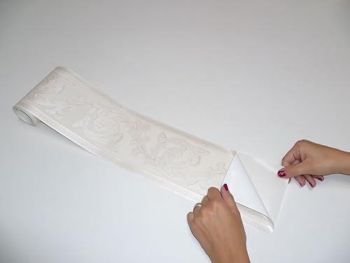 A.S. Création Bordüre - Papierbordüre in erhabener Barockoptik in Beige und Creme - auf 5,00 m x 0,13 m je Rolle