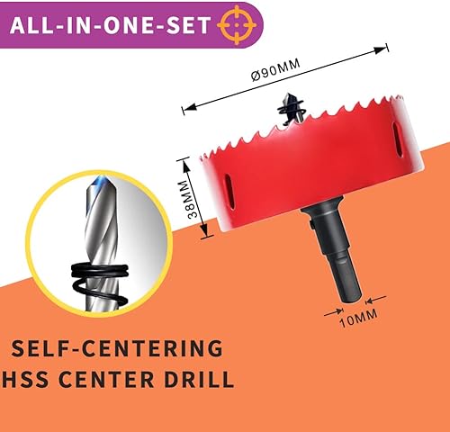 GARHWAL Bi-Metall-Lochsäge 75mm, Bohrkrone, Lochbohrer, mit Dreiecksschaft Adapter und Zentrierbohrer - Präzises und schnelles Schneiden von Holz, Kunststoff, Gipskarton, dünnen Metallplatten und mehr