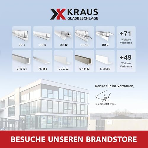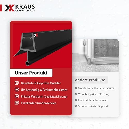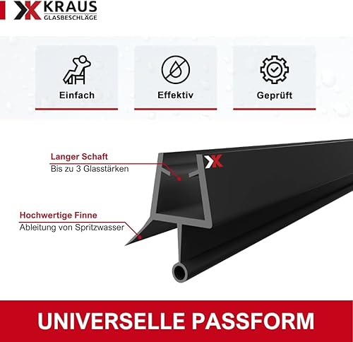KRAUS Premium Duschdichtung DD-13 Duschtürdichtung für 6-8mm Glasstärke à 1000mm in transparenter Optik, Duschdichtungen für Duschtüren & Duschkabinen Dichtungen vom Experten