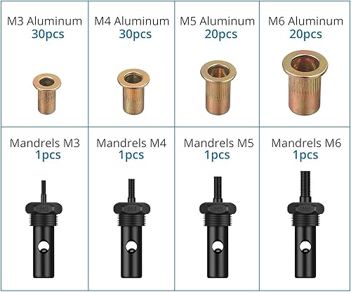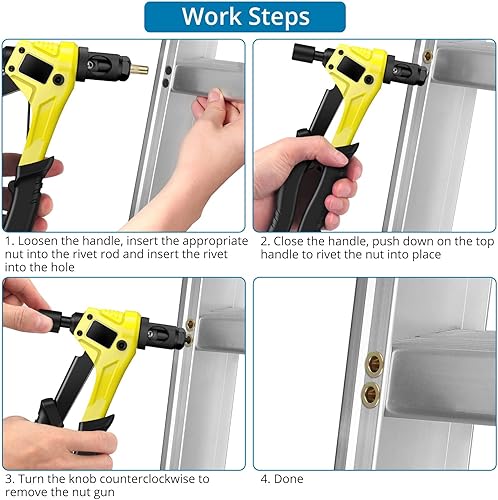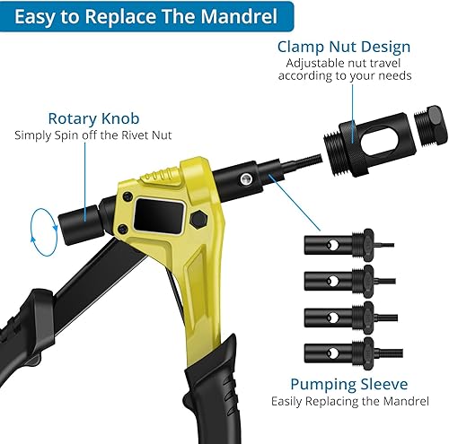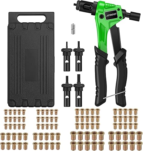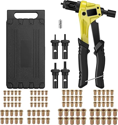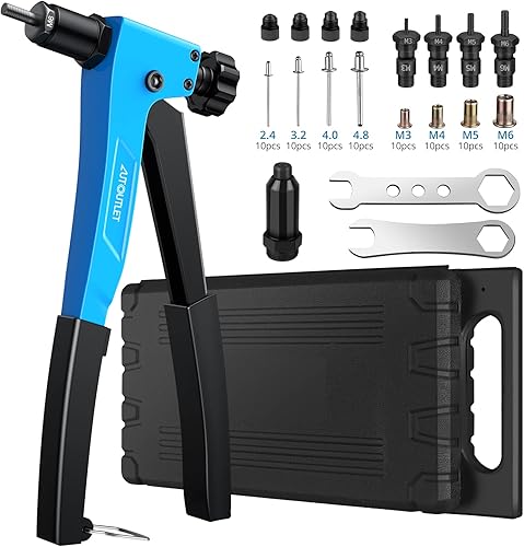 AUTOUTLET Nietmutternzange Set, Profi Hand Nietzange mit M3 M4 M5 M6 Dorne und 100pcs Nieten, 8' Mini Nietmutternpistole Nietmaschine mit Werkzeugbox, Hand Riveter Rivet Gun Riveting Tools-blau